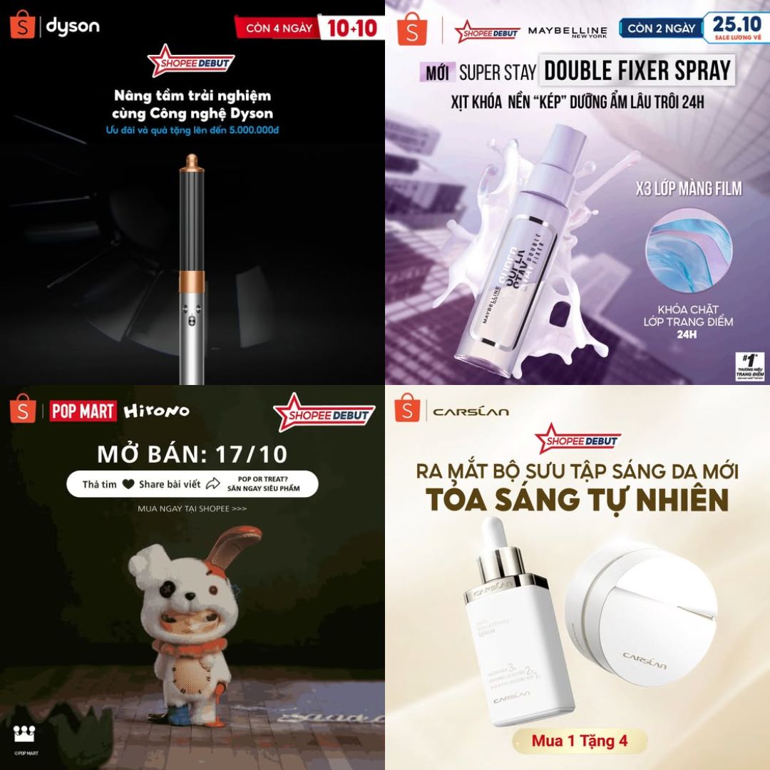 Sản phẩm mới đến từ các thương hiệu Dyson, Maybelline, Popmart, Carslan đều hội tụ tại sân khấu Shopee Debut tháng 10 vừa qua.