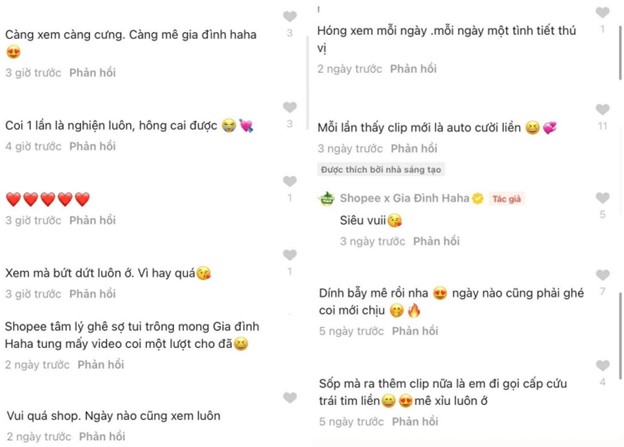 Nhiều khán giả cho biết họ đã hình thành thói quen truy cập Shopee Video vào 20H mỗi tối để xem “Bữa Cơm Haha”, coi đây như là một hoạt động giải trí quen thuộc trong ngày. Việc người xem liên tục chia sẻ kỳ vọng về tập tiếp theo cho thấy mức độ theo dõi ổn định và sự gắn bó dài hạn với chương trình.