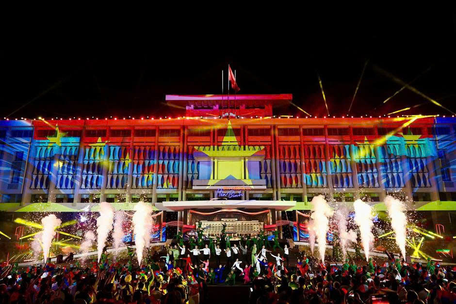Hình ảnh 3D mapping tham gia kể câu chuyện lịch sử trong Chương trình cầu truyền hình trực tiếp “Bản trường ca hòa bình”.