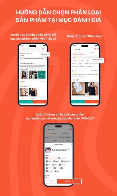 Bên cạnh đó, người mua không nên bỏ qua bước đọc kỹ đánh giá của những người mua trước. Trên ứng dụng Shopee, đánh giá có thể được lọc theo từng phân loại sản phẩm, giúp quá trình tham khảo trở nên nhanh chóng và phù hợp với nhu cầu thực tế hơn.